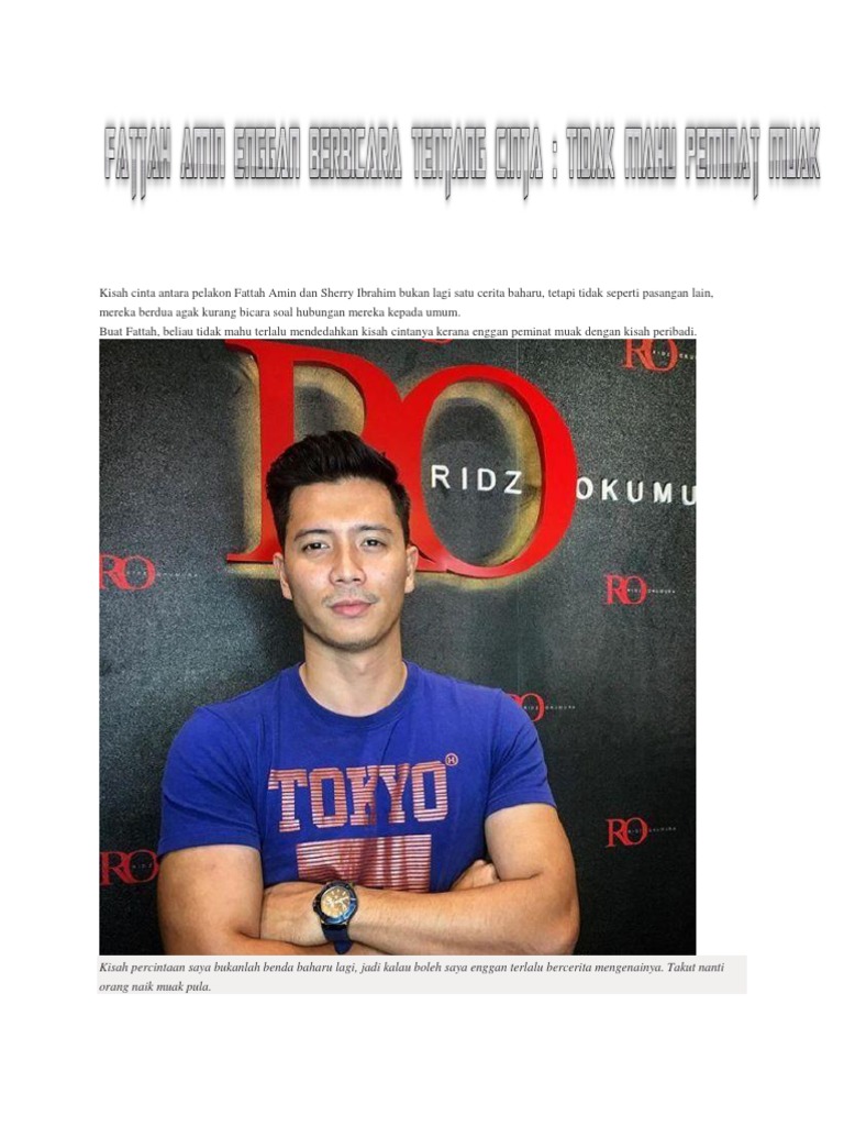Fattah Amin Dan Sherry Ibrahim Putus Cinta from assets.bharian.com.my Beliau mula meraih kemasyhuran sebagai juara hero remaja 2011/2012 dan terkenal menerusi peranan sebagai watak utama sebagai dalam drama playboy itu suami aku sebagai raja. Fattah amin, tomok dan pekin ibrahim bakal menjayakan pementasan muzikal cinta pertama the musical di uum sintok, kedah tahukah anda, selebriti kesayangan ramai seperti fattah amin, tomok dan pekin ibrahim merupakan mahasiswa jurusan ijazah sarjana pengurusan. Kami juga pernah berbincang dan berusaha menyelamatkan hubungan ini. Fathia latiff, fattah amin, erwin dawson, nazeera sardi, amy mastura,datuk eizlan yusof mengisahkan mengenai. .amin, fattah amin sherry ibrahim in istanbul, fattah amin dan sherry ibrahim putuskah, fattah amin di malam kemuncak anugerah pilihan online 07 2013, sherry ibrahim seihklas cinta, rap fattah amin amyra rosli, komen sherry ibrahim ttg issue nikah fatah fazura, neelofa teruja berlakon drama. Fattah sendiri mengesahkan berita tersebut di bh online tetapi beliau enggan mendedahkan punca. See more of fattah amin on facebook. Bukan niatku membalas senyuman untuk menyakiti hati kamu.